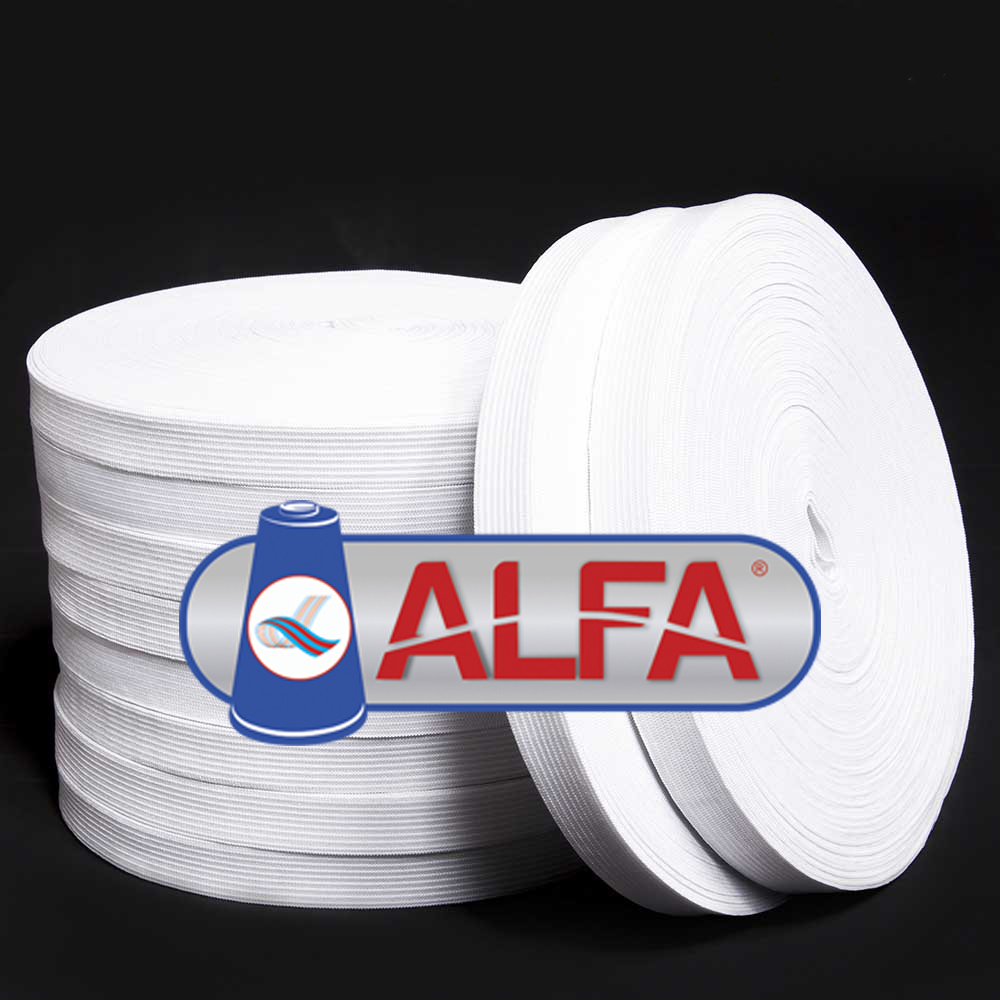ELÁSTICO DE EMBUTIR 70% POLIÉSTER 30% ELASTODIENO, COM 15MM DE LARGURA, SÃO PRODUZIDOS COM FIO BRANCO E PRETO, NO TEAR CROCHÊ, E SÃO EMBALADOS EM ROLOS COM 25 METROS. O ELÁSTICO ALFA É EXTREMAMENTE VERSÁTIL, COM ÓTIMA RESISTÊNCIA E BOA ELASTICIDADE. É UTILIZADO EM, ARTIGOS DE BELEZA, ITENS PARA TREINAMENTO FUNCIONAL, PEÇAS DE ROUPA, ALÇAS DE SACOLAS E BOLSAS, BONÉS, CAMA, MESA E BANHO, ENTRE OUTROS.